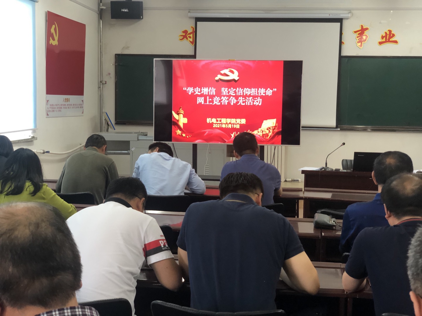 本网讯(通讯员 周子明) 5月19日,公司党委在1462会议室组织全体教师开展“学史增信 坚定信仰担使命”网上竞答争先活动。