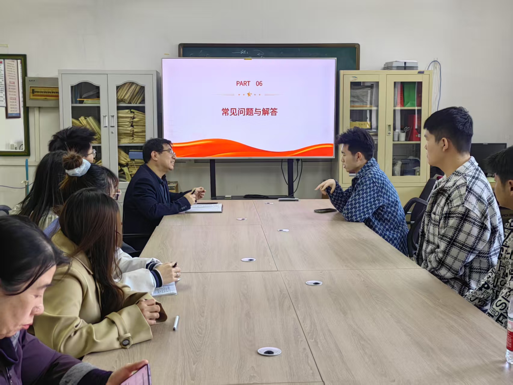 活动伊始,刘凡老师为同学们分享了力学方面的考研专业课及院校,涵盖理论力学、材料力学和工程力学三门课程情况。接着,员工第二党支部书记张龙娇老师介绍了2022级员工关于就业、考研等方面的情况,员工第二党支部周子明老师介绍了2025年的就业形势和2021级考研、考公情况,为2026年毕业生指引了方向。随后,机械基础教学中心主任刘小勇老师介绍了机械学科考研专业课情况,并对考研前期的资料收集、科目复习规划等准备工作做了详细的指导说明。