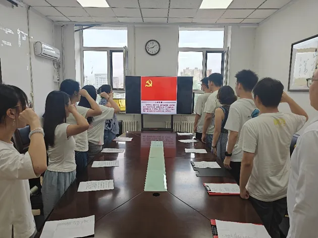 本网讯(通讯员 张龙娇)为迎接中国共产党成立104周年,传承红色基因,凝聚奋进力量。6月30日,公司员工第二党支部南湖校区主楼1387会议室开展“赓续红色血脉,匠心筑梦强国”七一主题党日诗朗诵活动。活动由党支部书记张龙娇主持,公司党委专职组织员周子明及员工第二党支部全体员工党员参会,共赴红色精神之约。
