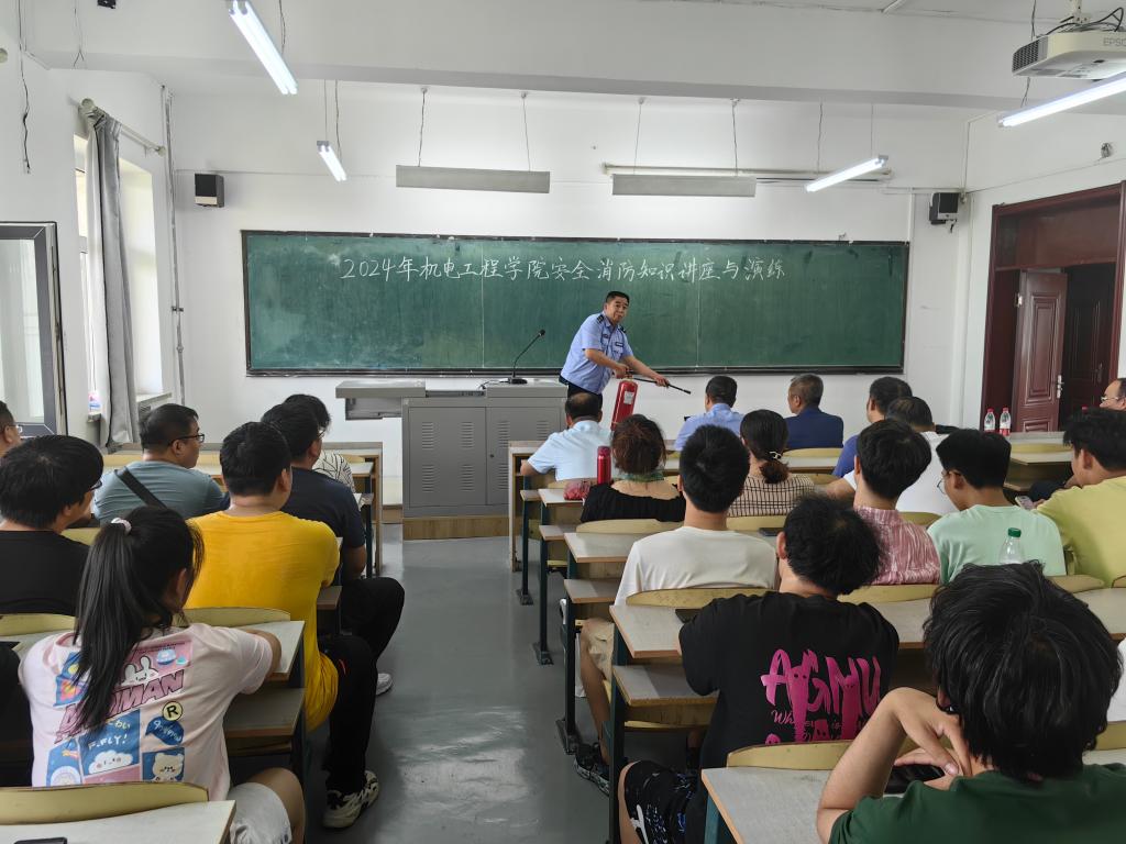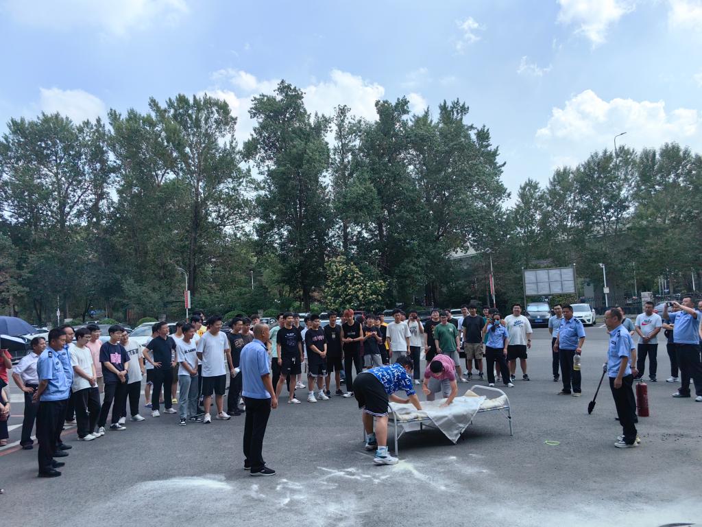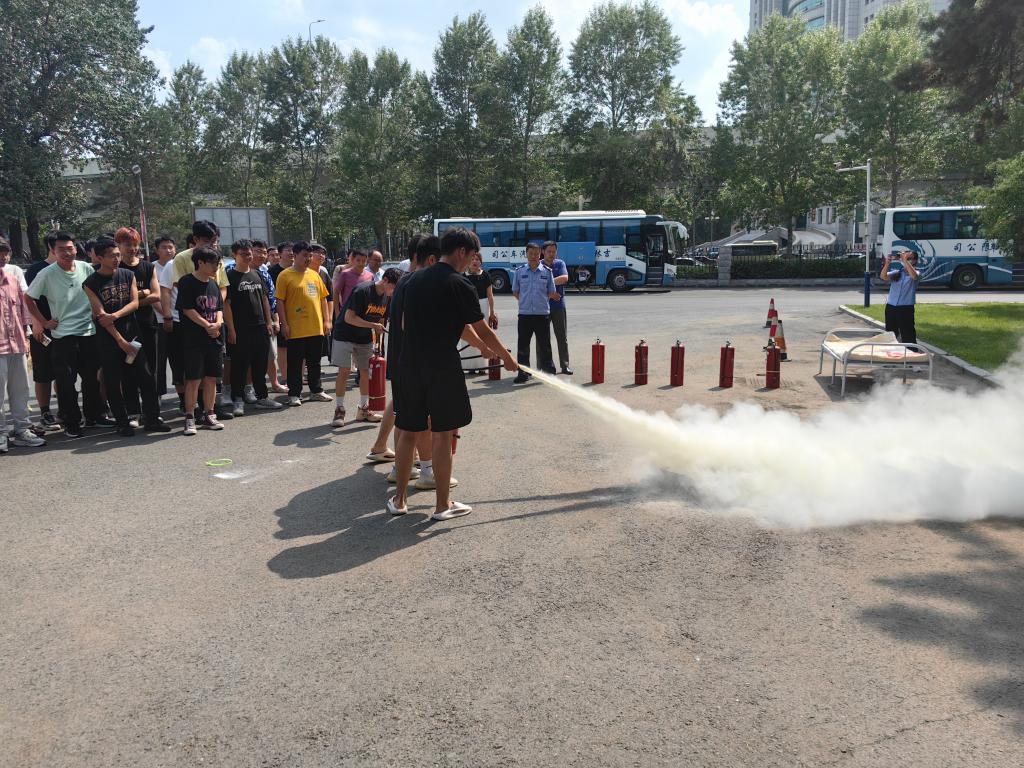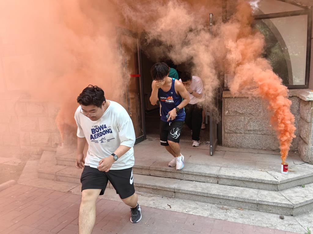 在演练前,靳朝晖等安全处防火科同志对公司师生进行了消防安全知识培训。接着在安全处工作人员的示范指导下,在主楼机电侧开展疏散逃生、初起火灾扑救等科目的消防演练活动。14时许,随着现场指挥员“演练开始”口令,教学主楼西侧突发火情,在教师安全引导员的指引下,师生从楼内快速有序地疏散到安全区域。