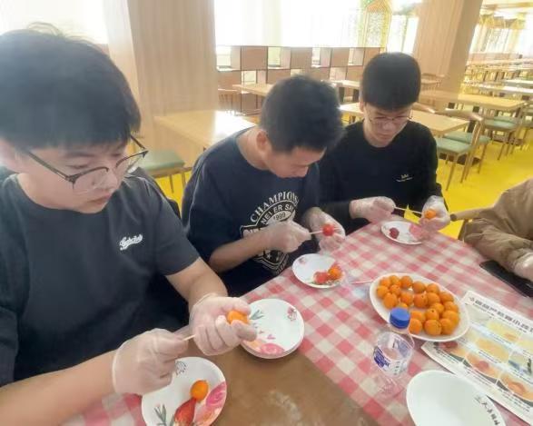 讲解结束后,同学们迫不及待地开始了动手实践。虽然动作略显生疏,但他们的眼神中透露出坚定与专注。一串串糖葫芦在同学们的手中逐渐成型,虽然有些糖葫芦的形状并不完美,但每一串都凝聚了他们的智慧与汗水。