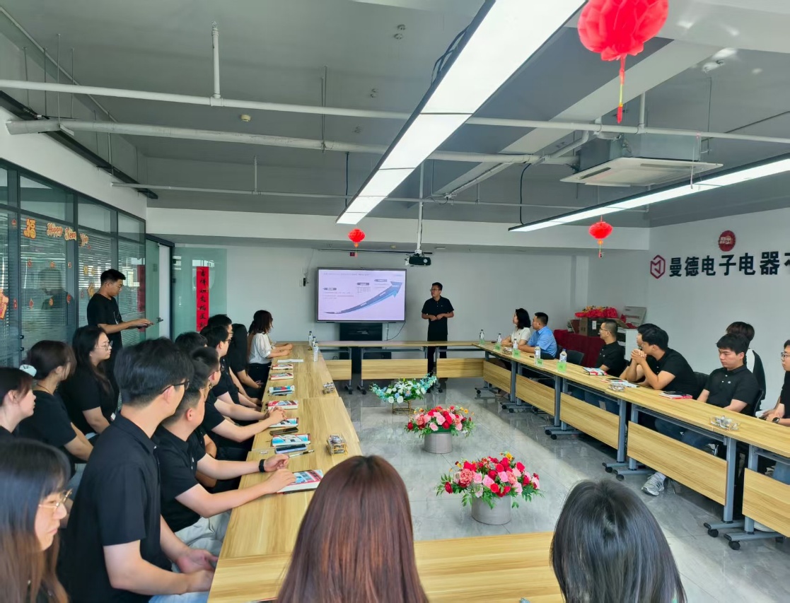 交流伊始,曼德光电长春分公司领导热情接待院方代表,陪同参观公司办公环境与生产区域,展示了公司的发展历程和企业文化。随后的座谈环节中,许立国经理发表了致辞,对院方领导的到来表示热烈欢迎,并详细阐述了公司未来发展战略和对人才的重视,同时分享了近年来院方向公司输送的优秀人才数据。许立国经理在发言中,进一步表达了对公司人才培养工作及校企合作推进成效的肯定。为感谢学经理期以来的人才支持,他代表公司向公司赠送锦旗,并特别准备鲜花与节日礼物,向全院教师致以教师节的诚挚问候。