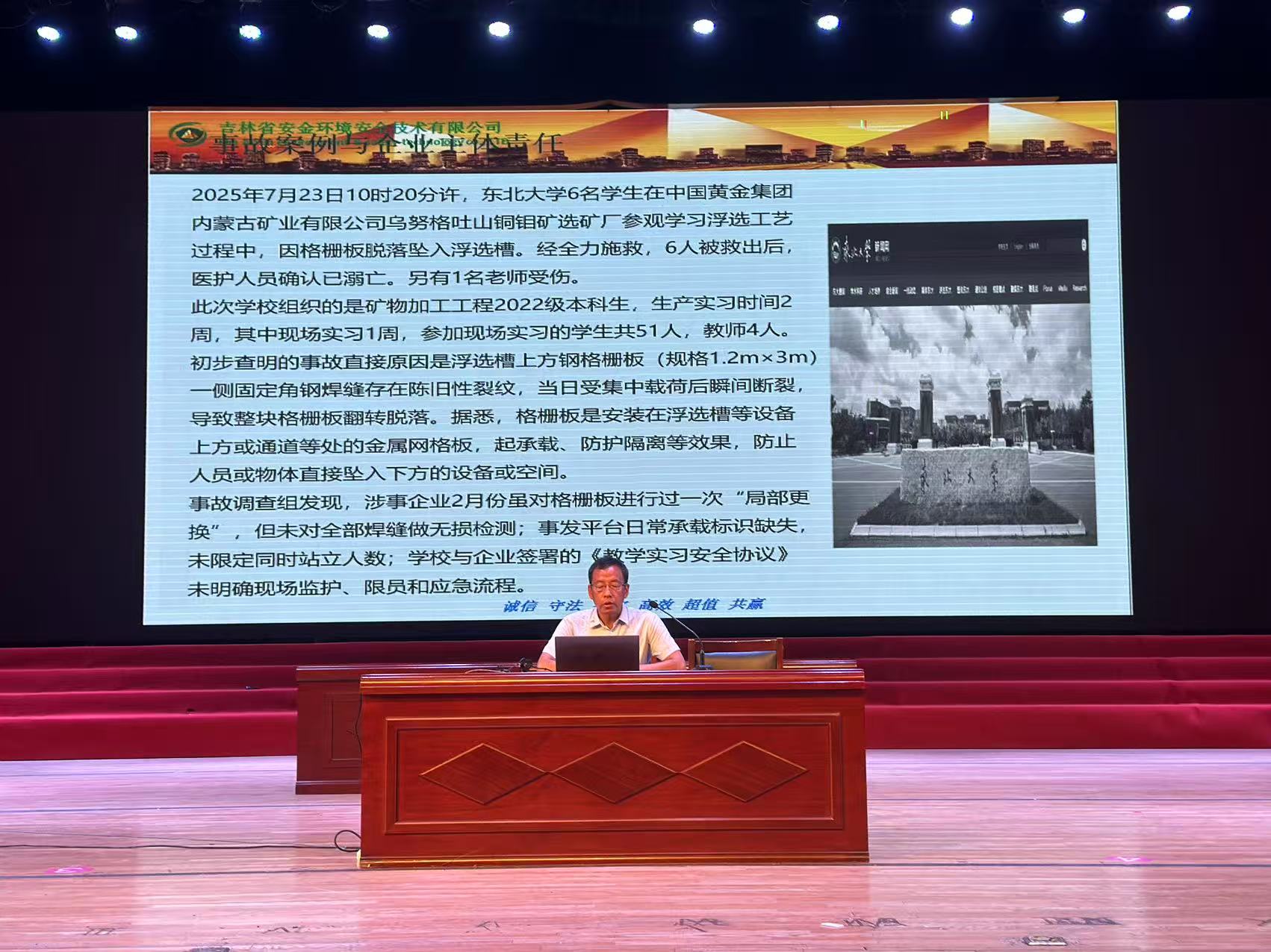 本网讯(通讯员 顾芷薇)为进一步推进永利yl23411生产实习工作的有序开展,加强师生在生产实习期间的教育管理,提高生产实习教学质量与效果,增强师生安全防范意识。9月4日,永利yl23411举办了生产实习安全教育培训,会议由机械电子工程系张炜主任主持,公司副经理谷东伟参加会议。会议邀请吉林省金承环境安全技术有限公司高级工程师张明光作安全教育报告,永利yl234112022级员工、国际教育公司机械工程、工业工程专业2022级员工及生产实习指导教师500余人参加会议。