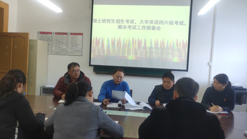 12月12日,公司在1387会议室召开硕士研究生招生考试、大学英语四六级考试、期末考试工作部署会。会议由公司党委副书记黄向东主持,各年级辅导员老师参加会议。会议就各年级如何开展好诚信考试教育工作进行了简要安排。