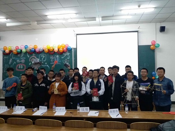 本次大赛旨在加强同学的动手能力和专业素养,要求员工小组合作,在有限材料的条件下设计并制作出具有创造性和实用性的机械结构。同学们使用简单的竹签、橡皮筋等发挥个人创意,制作出了埃菲尔铁塔、摩天轮、投石车等造型。比赛中选手分别讲述了自己的作品的创意来源,修改经过,以及完善结果,使在场的同学们了解到了一个创意从雏形到成品的过程。极大的鼓舞了同学们的创作热情和动手热情。最终,160103班的赵嘉颖慧小分队在决赛中力压群雄,夺得冠军。