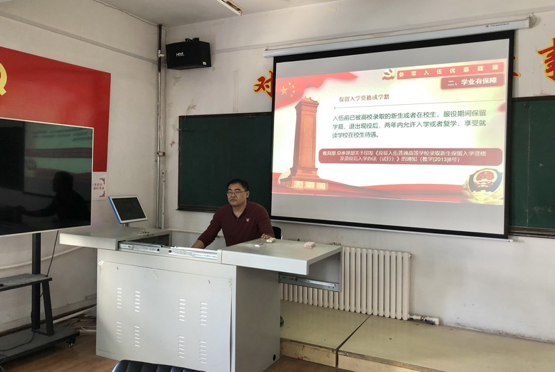 随后,宫老师对入伍后国家提供的学费补偿、家庭优抚、立功奖励等多项优惠政策进行了介绍,使同学们对国防知识和征兵政策有了更全面的了解。最后,由公司征兵宣讲员姜文同学对同学们的提问进行了解答,同学们纷纷表示受益良多。