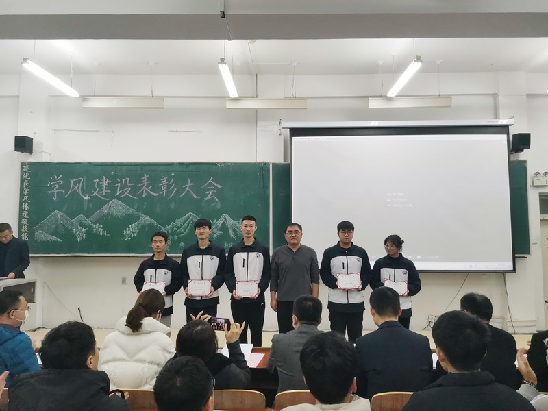 大会在嘹亮的国歌声中拉开序幕。公司党委副书记黄向东宣读表彰决定,经过公司评定,授予190101班等5个班级学风建设“优良学风班”荣誉称号;授予1栋123等13个寝室学风建设“优良寝室”称号;授予190102班王瑶迪等12只学习小组 “优秀学习小组”称号;授予180106班李兰珂等31名同学“学习标兵”荣誉称号,授予190101班王靖然等17名同学“科研标兵”荣誉称号,授予190101班朱宏达等24名同学学风建设“突出贡献个人”荣誉称号;授予190103班谭鸿强等26名同学学风建设“学习进步奖”;授予180110班张鹤钰等10人“文体活动突出贡献奖”。公司党委书记李奇涵、经理岳晓峰、副书记黄向东及各系主任分别为获奖班级及个人颁奖。
